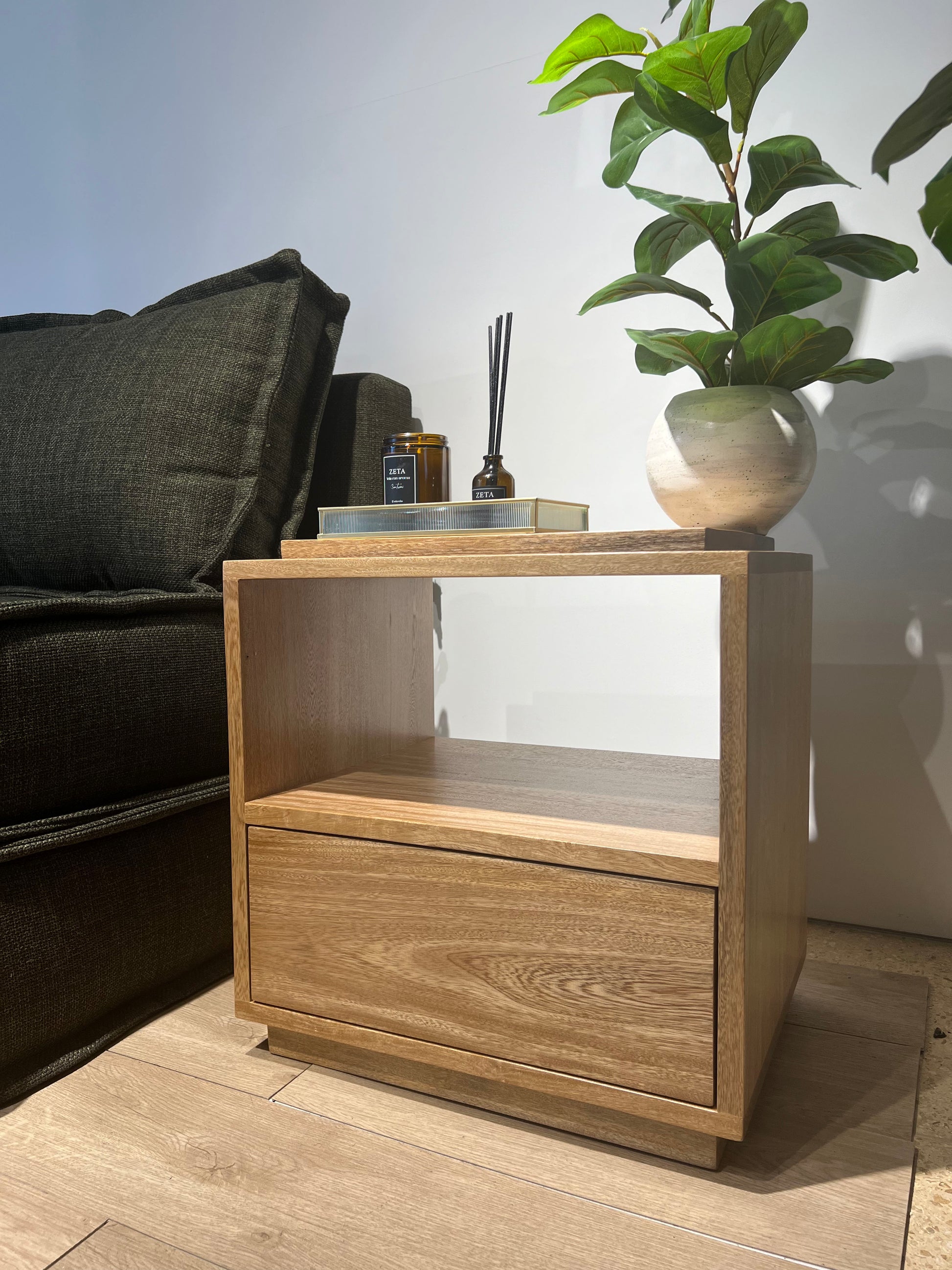 NOCHERO EN ROBLE CON CAJÓN EN MIMBRE